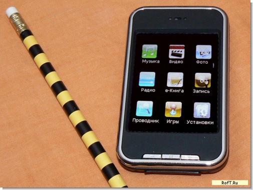 Всеядный 16-ти гиговый плеер с сенсорным экраном и слотом под SD-карточку за 1940р с заказом через инет. Читает книжки, играет музыку, крутит видео, есть радио и тетрис, плюс ко всему тачскрин. Список форматов: МР3,MP4,WAV,ASF,WMV,MPEG,JPEG,BMP,TXT,3GP