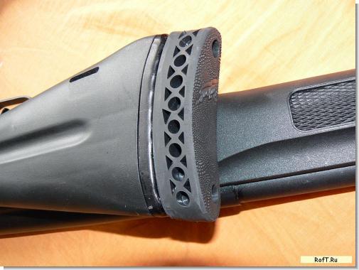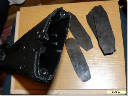 Пришлось покумекать и придумать несколько способов удлинения штатного приклада. Первый способ, который я попробовал - это снять родной металлический затыльник и нарезать из листовой резины прокладку нужной толщины.