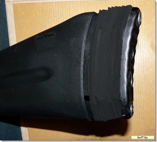 Остается обрезать острым ножом крупные излишки резины и обработать напильником или наждачкой. Так же рекомендую все это разобрать и проклеить каждый слой резины клеем, на худой конец просто силиконовым герметиком. Резиновый бутерброд тогда станет монолитным. Внешний вид гораздо лучше, чем стандартная АК-шая резиновая калоша.
