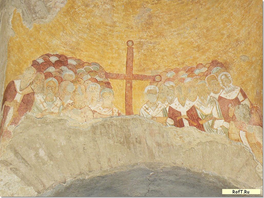 Никто ничего не восстанавливает. Никакие фрески не дорисовываются. Нас убеждали, что нельзя фотографировать со вспышкой, потому, что используются какие-то светочувствительные краски при восстановлении росписи потолка. Сами посмотрите. Ни одного мазка не сделано после разрушения церкви. Все это туфта. Мне пришлось в фотожопе усиливать яркость красок на стенах, чтобы хоть что-то было понтяно из росписей. В реале они выглядят вот так:
