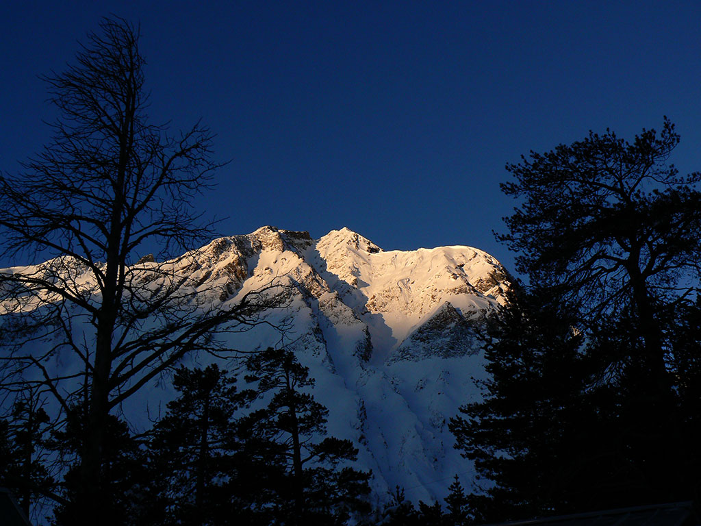 Это рассвет, горы только-только начали озаряться первыми лучами солнца.