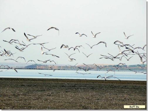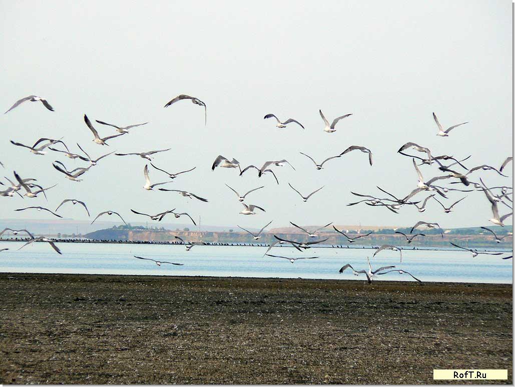 Лиман с другой стороны косы. Чаек и мартынов там немерянно. А