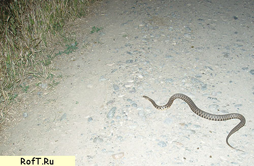 По дороге регулярно проходит шествие змей, очень частые гости. Эта, судя по утолщению в середине или беременная или наелась до отвала.
