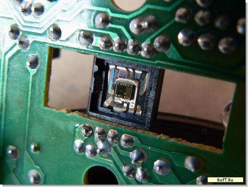 У такой мышки видно зеркальце, которое передавало изображение подсвеченного коврика на матрицу из 9 фотодиодов.