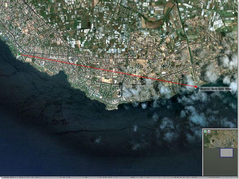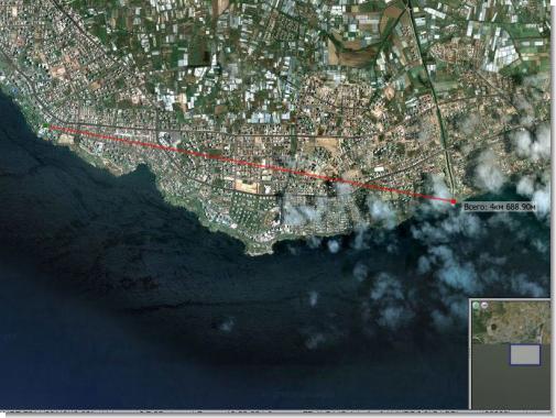 P.S. Вот обещанный спутниковый снимок, показано расстояние по прямой от Adonis"a (слева) до анталийского водопада (точка справа)