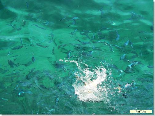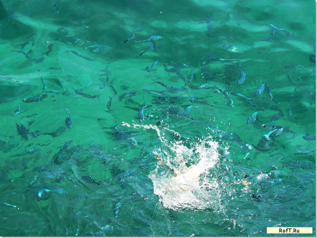 Местная рыба дерется за кусок хлеба и уминает большие куски батона за одну-две минуты полностью.