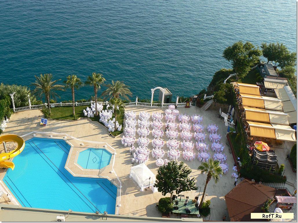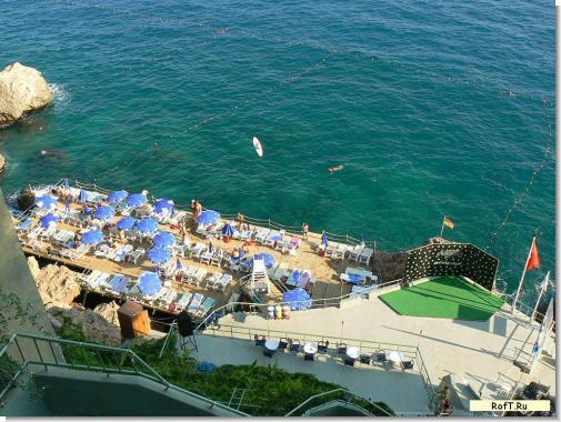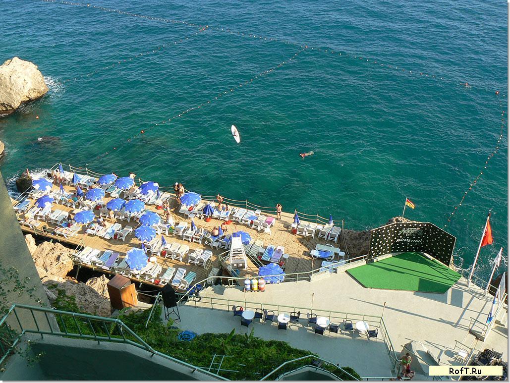 Не стоит пугаться отелей с платформами вместо пляжа - это, как оказалось, прекрасное развлечение. Наш отель (Grand Adonis) распологался в прекрасном зеленом районе Лара г.Анталии. Вид с крыши отеля на город, зеленые парки, море и горы просто великолепен. Крышу по приезду в отель мы облюбовали сразу.