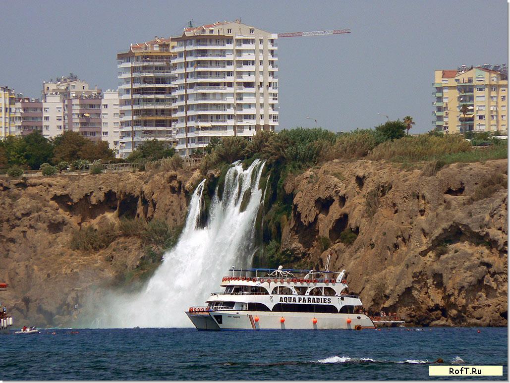 Очень хотелось посмотреть на водопад, который находится в самой Анталии. Водопад со скалы прямо в море - разве не прекрасная идея? Прочитав в отзыве на наш отель, что этот вожделенный анталийский водопад легко находится по координатам: "выходишь из отеля и налево метров 200" мы тронулись в тот же день его искать. Надо говорить, что и через 1,5 км он не нашелся? Более того, в другую сторону (право-лево многие до сих пор путают) его тоже не было, хотя туда мы отмахали по шагомеру около 2,7 км smile Уже позже, сидя в номере гостиницы и пользуя хреновый вайфай соседнего отеля от которого ноут постоянно вешался, а вафля нашего отеля просила пароль, а спускаться на ресепшен было впадлу, я по спутниковой фотке (боже храни гугл и его начинания) нашел водопад.