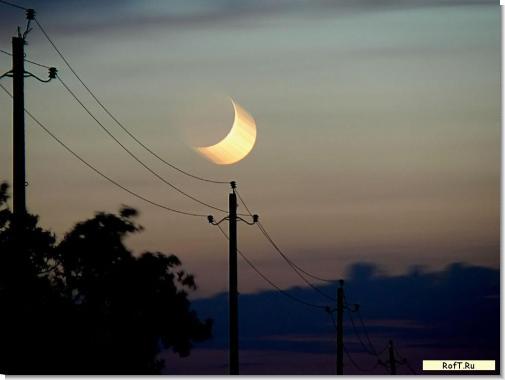 Фотоаппарат честно пытался снать этот полумесяц в течение 60 секунд. А сам месяц все это время полз по небу.
