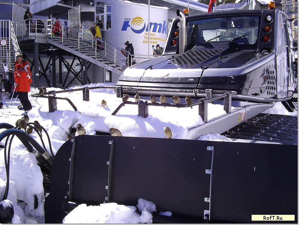 Здесь справа можно разгляжеть работу такой снеговой пушки - белесый туман. Оседает он уже мелкими кристалликами льда.