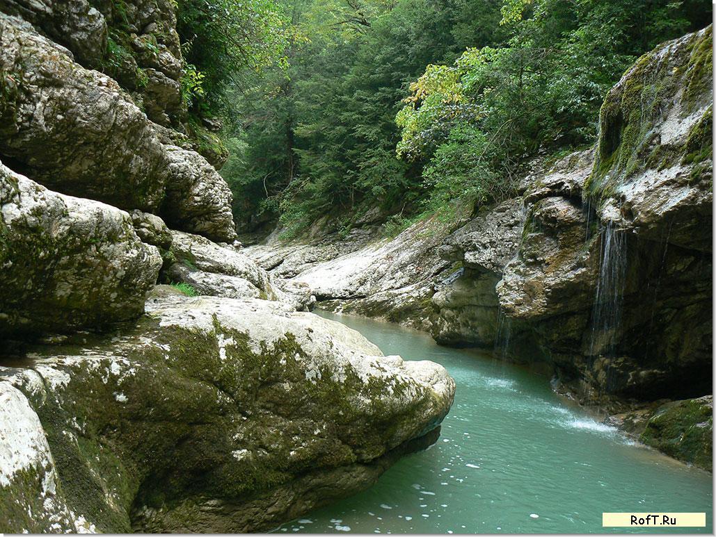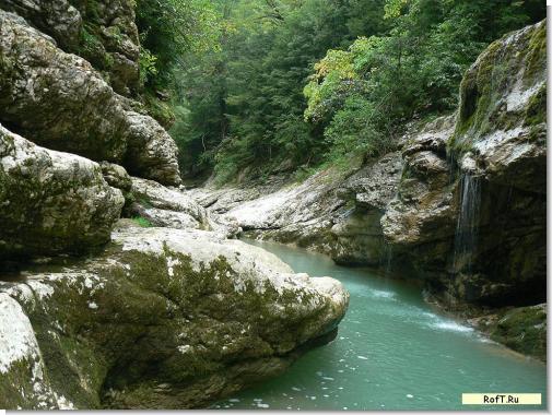 Река прорезала в скалах очень глубокое русло, многие десятки метров.