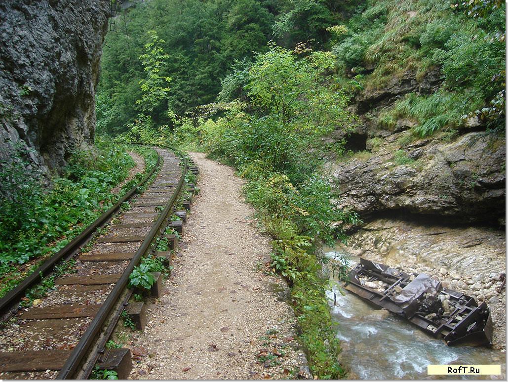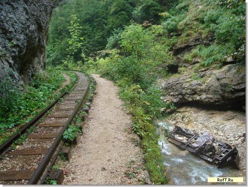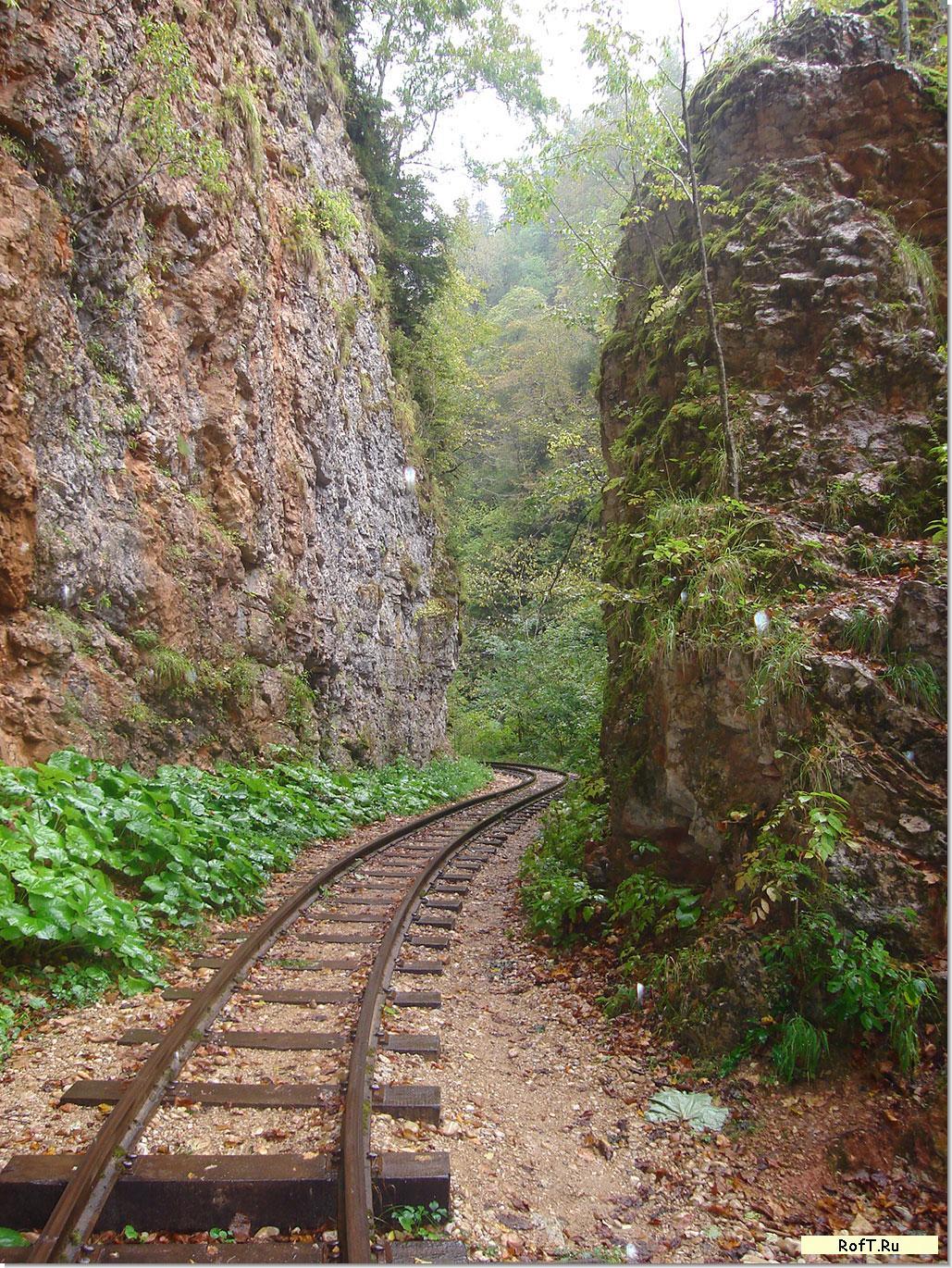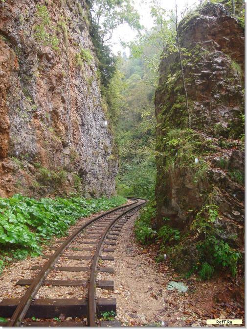 Когда-то ваш покорный слуга катался по этой железке на маленьком тепловозике Марголина. Сейчас он лежит на дне реки. теперь там катается какая-то стремная мотодрезина. Возит в кафе хавку. Жаль, что теперь нельзя промчаться по ущелью на подножке вагончика.