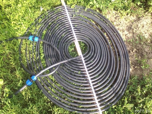Во время обвязки бассейна и насоса сделал отводы на подогрев через самодельный солнечный коллектор. Коллектор еще не доделан, но уже дает теплую воду во время фильтрации. Состоит из 50м ПНД трубы диаметром 20мм намотанной спиралью и закрепленной стандартными клипсами для полипропиленовой трубы. Позже для него будет отдельный циркулячионный насос на постоянную работу в солнечный день.