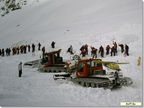 Откатали воскресенье - снег отличный, пухляка валом, цены кошмарные, снегоходы ужасные. А теперь грустные новости: сошла лавинка на трассу под югославкой. Толпа народу отгоняла зевак и пыталась кого-то откопать их под снега. При мне не нашли. До вечера, судя по всему, тоже. Подробностей не знаю. Зеваками стать не хотелось, а помочь реально мы ничем не могли, что и обидно. Снег двигали ратраками по слоям и в параллель искали лавинными щупами.