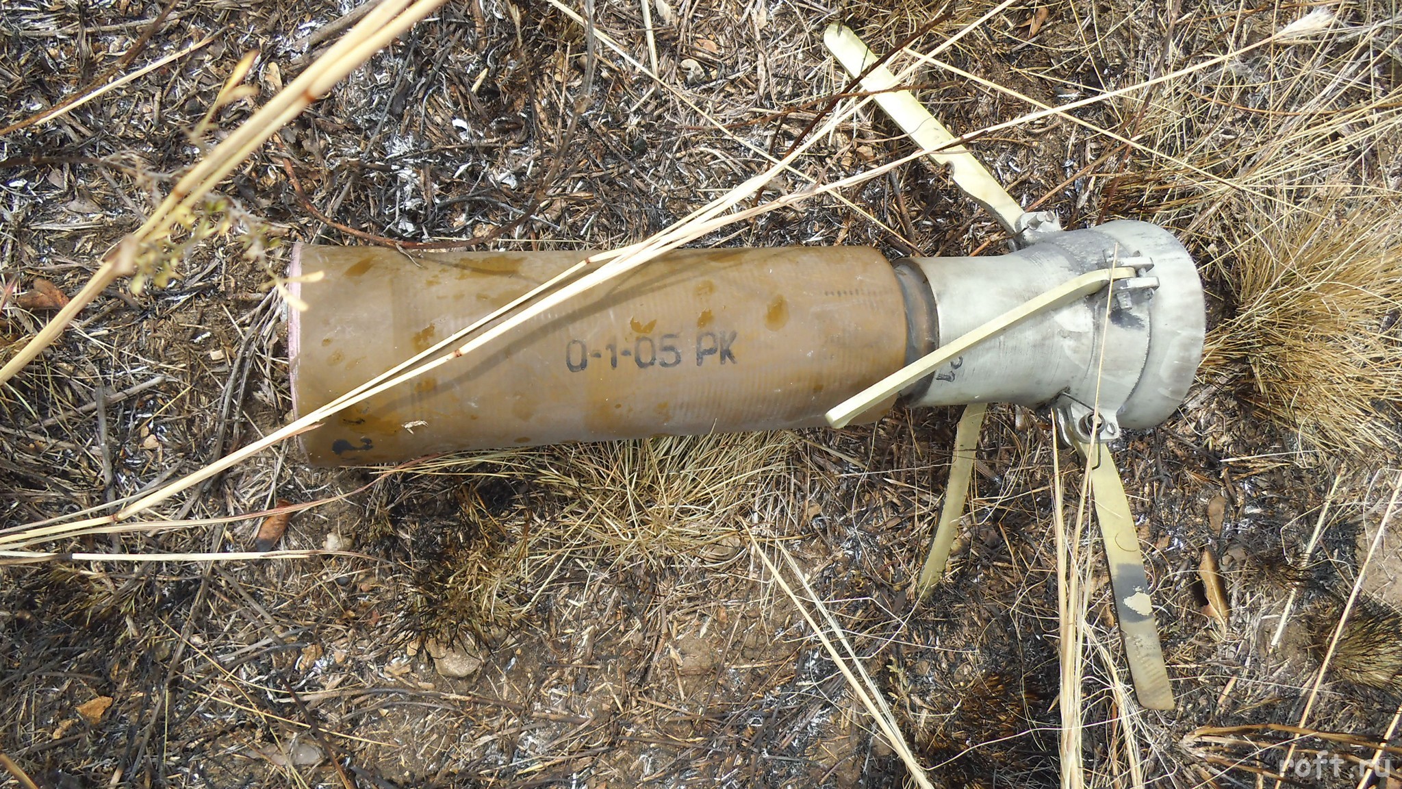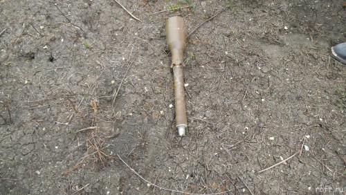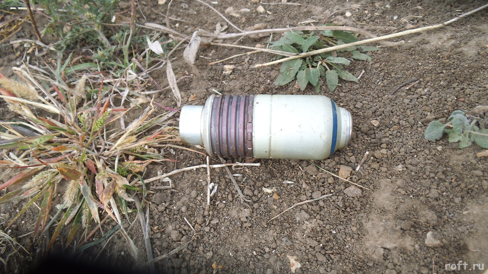 Валяются как останки от гранатометных выстрелов, так и сами не отработавшие выстрелы. Причем это не инертный черный (болванка), а самый, что ни на есть настоящий гранатец, просто вылетел и не взорвался.