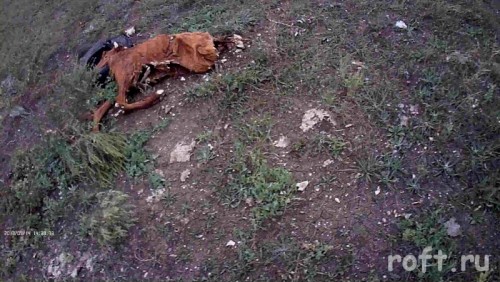 А это теленок, который то ли не убежал от пули, то ли нарвался на притаившийся снаряд. В общем судьба его была незавидна. Волки его уже разобрали на части, но опознать все еще можно.