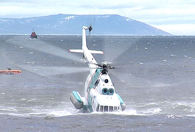 Вертолет вновь попытался взлететь и наступила развязка: после серии нырков винт передней частью коснулся воды, взметнулся сноп брызг, все вокруг вздохнули-застонали, и тут — резкий удар, грохот, стена брызг, а из нее летят обломки хвостовой балки…