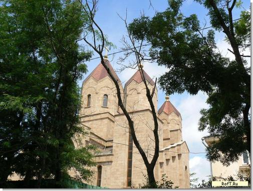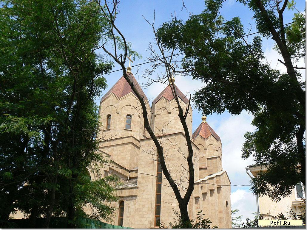 Это строящаяся армянская церковь, на июнь 2010 г еще не достроена и не освящена. А храм Святой Троицы находится от неё в 500 м по прямой (через дома квартала) и расположен в бывшем к/т "Россия".