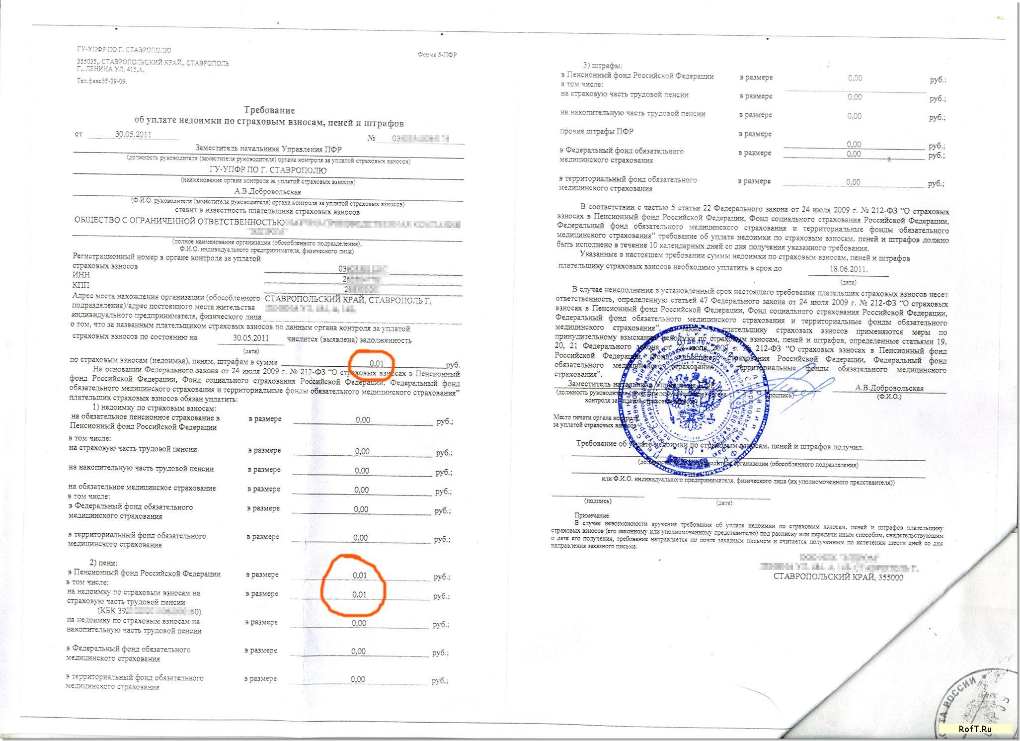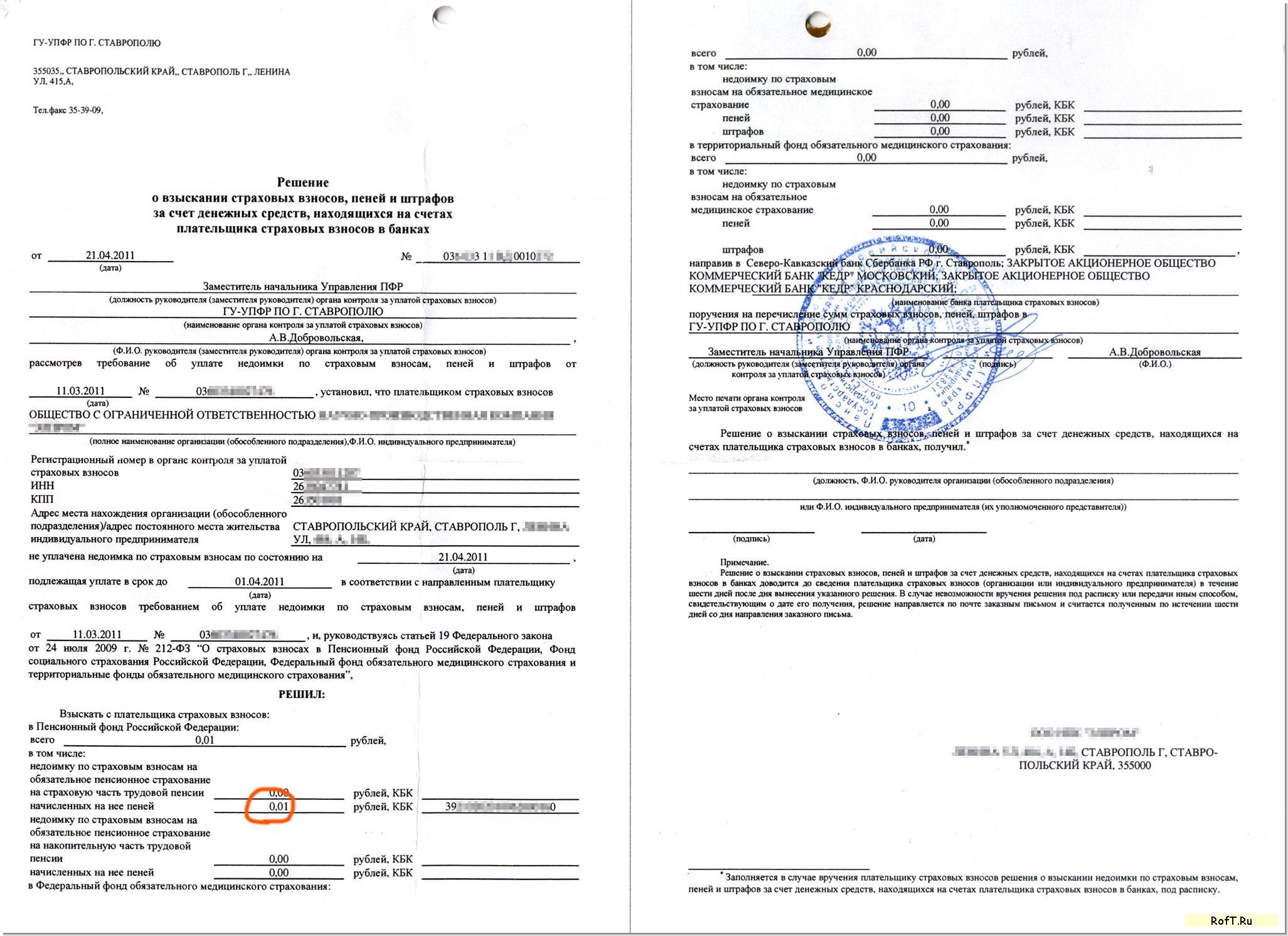 Потом пришло решение на безакцептное списание долга в ОДНУ КОПЕЙКУ со счета фирмы. Заказным письмом. Марок на заказном письме на ДВАДЦАТЬ ШЕСТЬ РУБЛЕЙ. Такое же письмо получил и банк с требованием перевести ОДНУ КОПЕЙКУ с нашего счета на счет пенсионного фонда. Стоимость письма так же ДВАДЦАТЬ ШЕСТЬ РУБЛЕЙ.