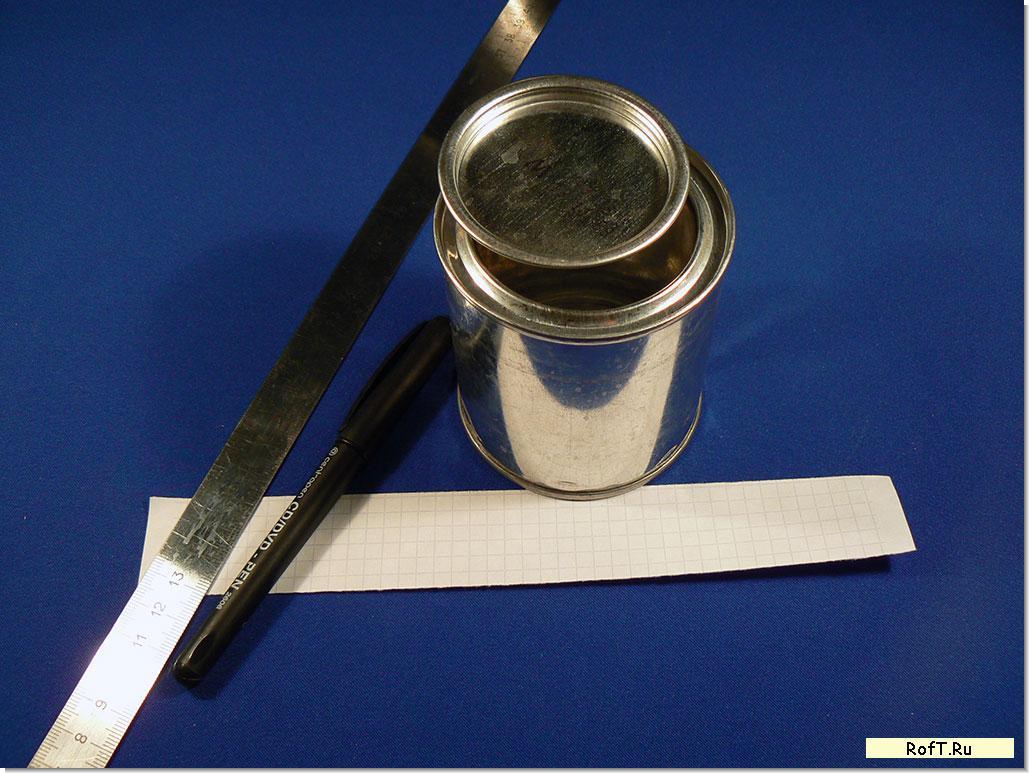 Итак: берем банку, линейку, полоску из листика в клеточку и маркер или любой рисующий или царапающий предмет.