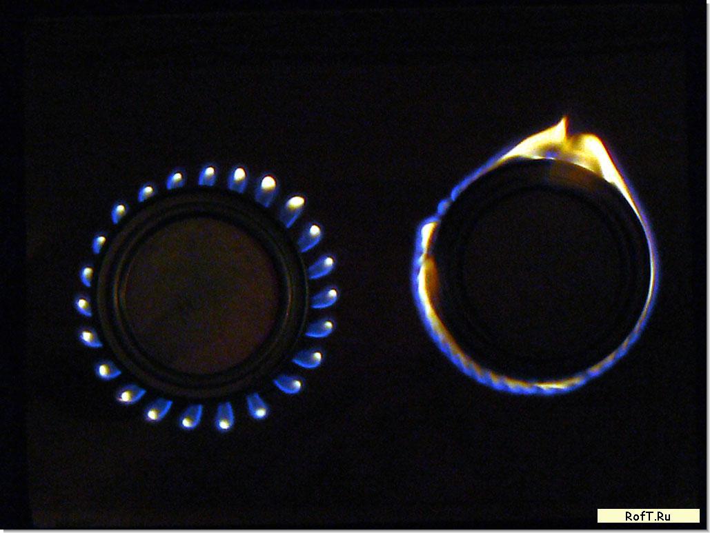 3. Начинаем сверлить, прокалывать шилом или прорезать ножом отверстия по отмеченной полосе. В данном случае я сделал ряд отверстий диаметром 0,8 мм через 10мм и чере 5мм - какой вариант для вас лучше - решайте сами. Как они горят видно ниже. Маленький диаметр отверстий для правильного горения лучше чем большой, но можно сделать 3-5 отверстий и по сантиметру. Равномерность отверстий - это чисто эстетический момент, чтоб получить красивый венец пламени как от обычной газовой плиты. Все!