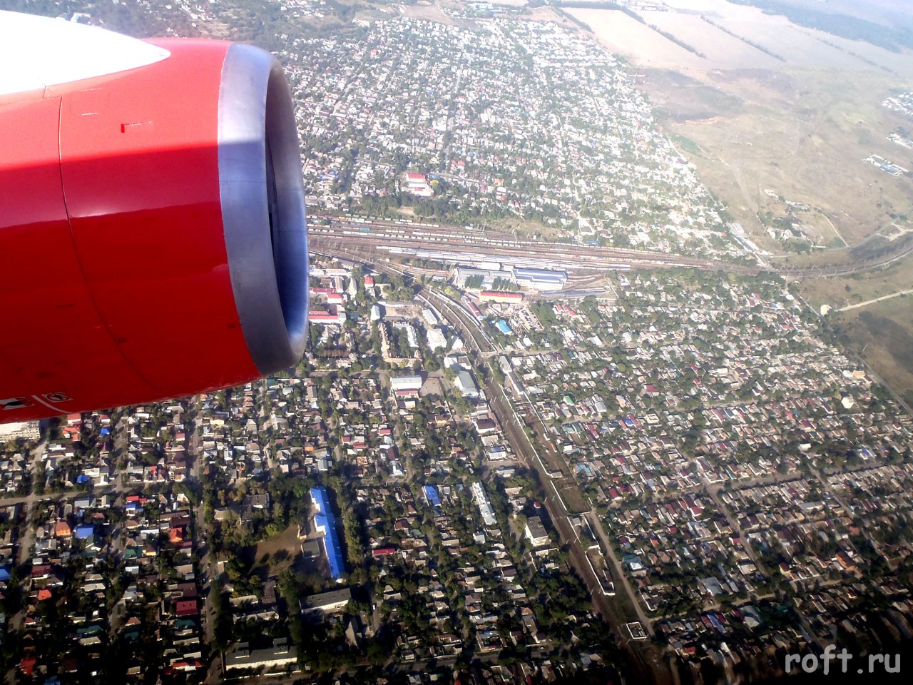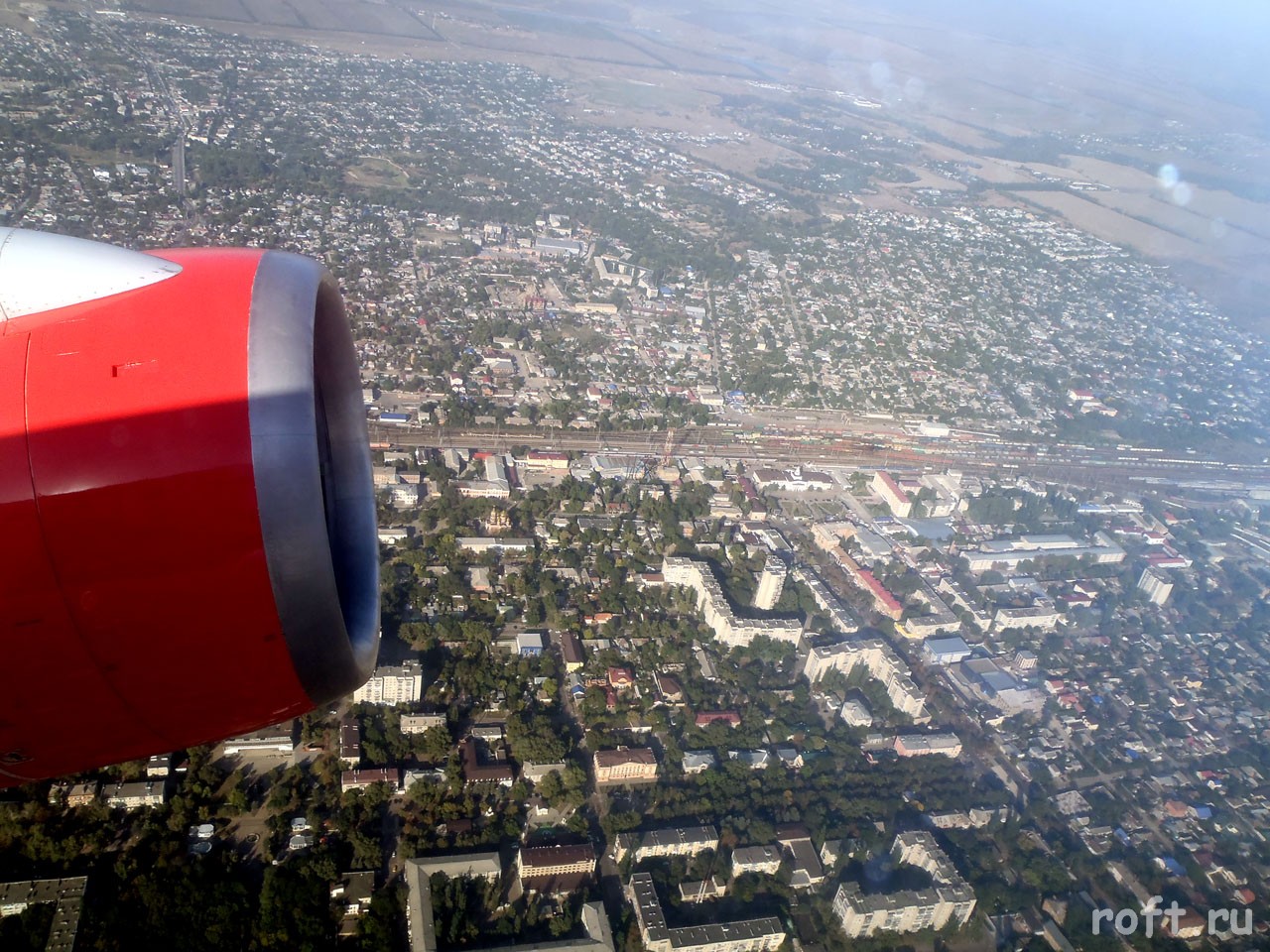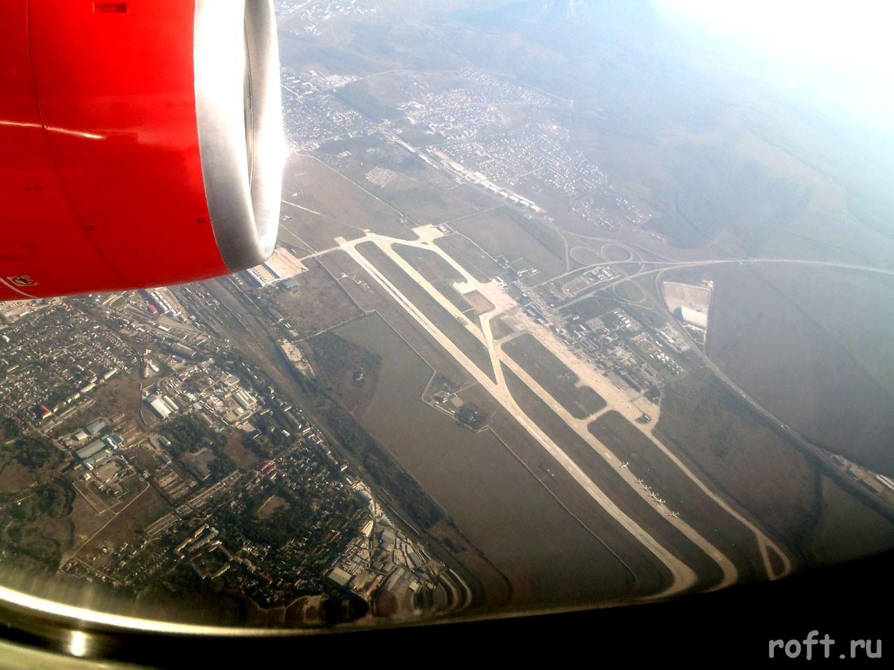 Аэропорт Минеральные воды как раз под нами и погода чудесная - все видно как на ладони. Игрушечные домики и между ними игрушечная железная дорога с игрушечными поездами.
