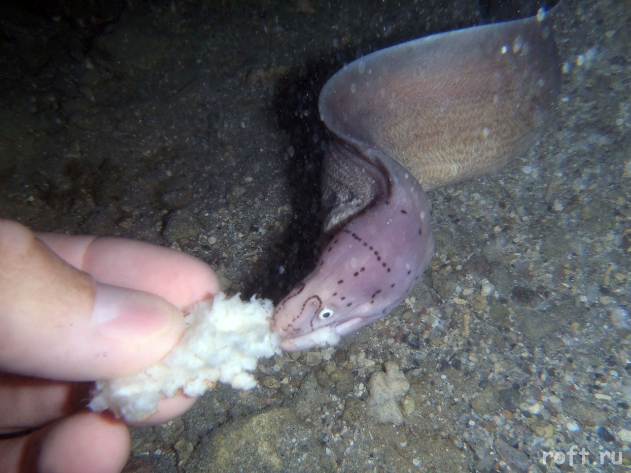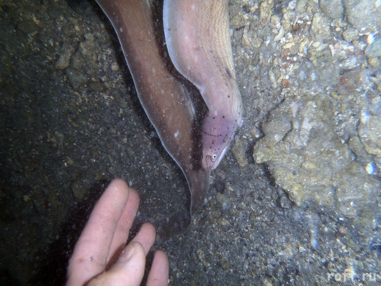 Большая двухметровая мурена, плавает глубоко - портрет не удалось снять, да и страшно блин.