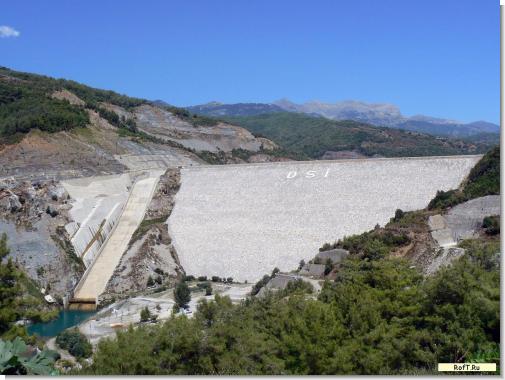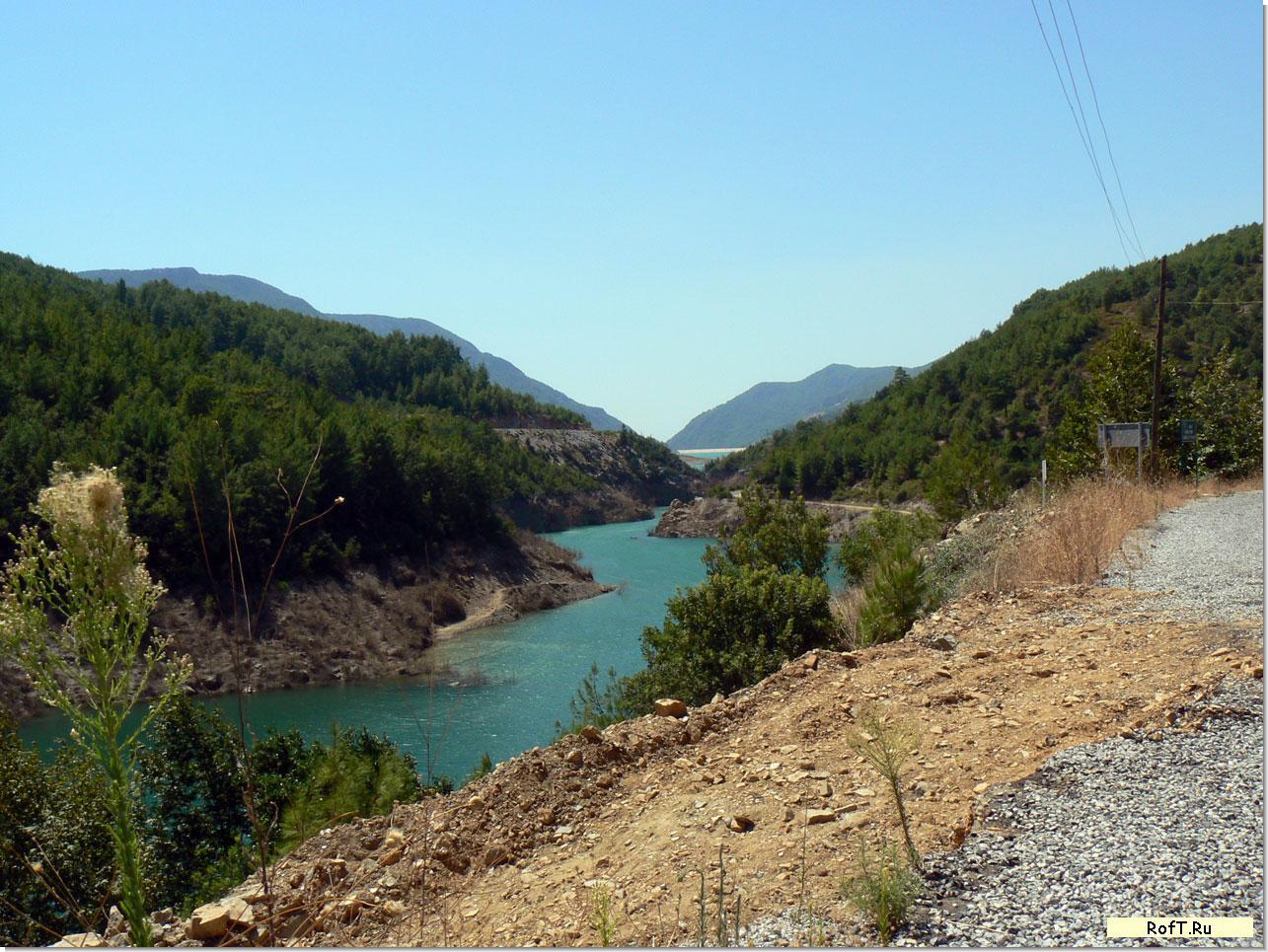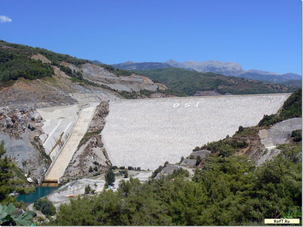Недавно отстроенная дамба и озеро за ней высоко в горах.
