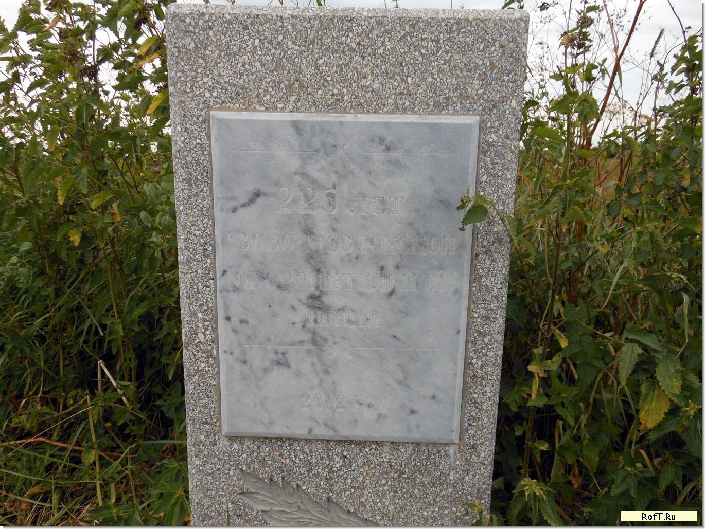 Памятный знак и деревянный крест рядом с ним установлены в честь 225 летия Азово-Моздокской оборонительной линии.