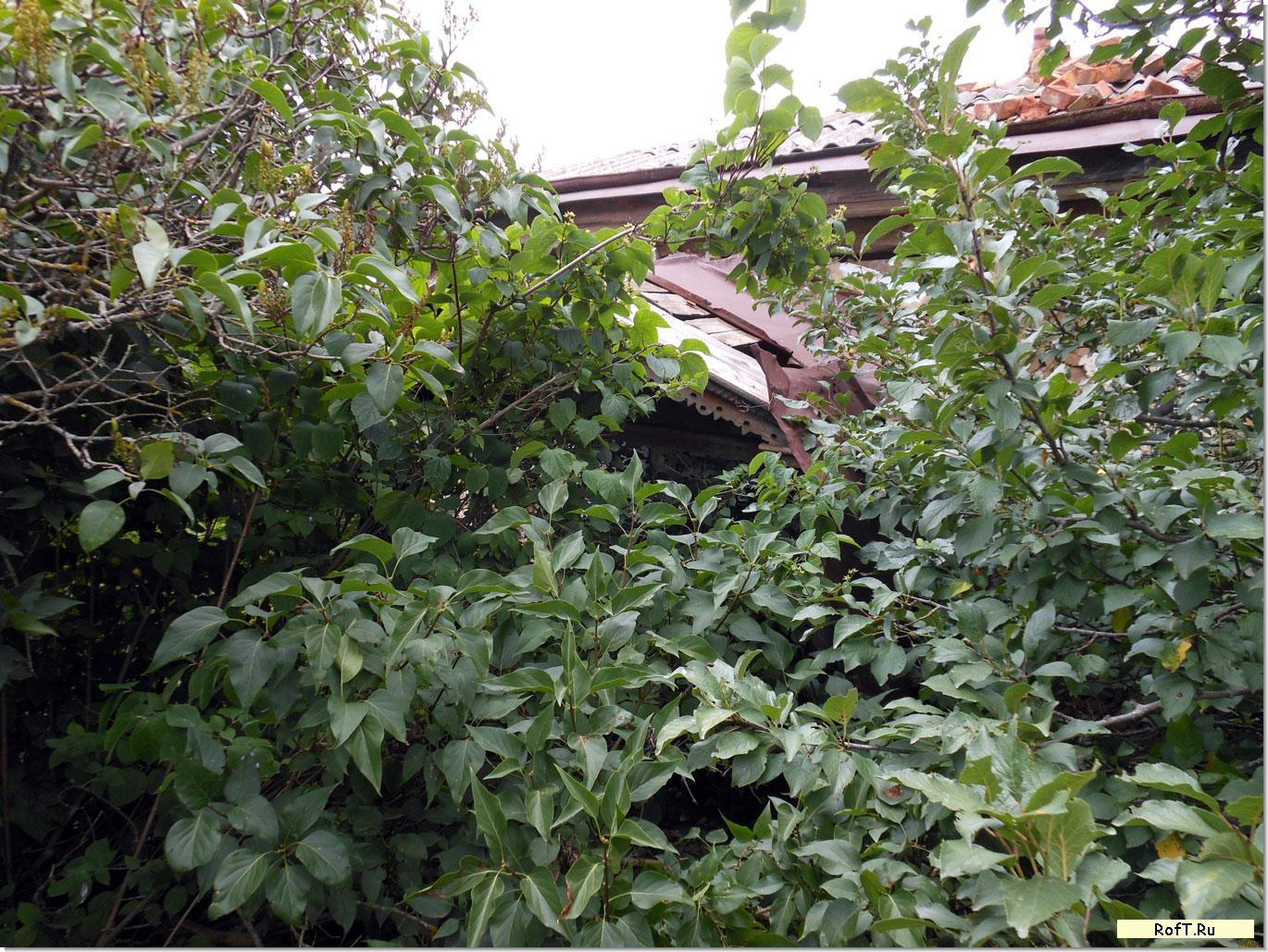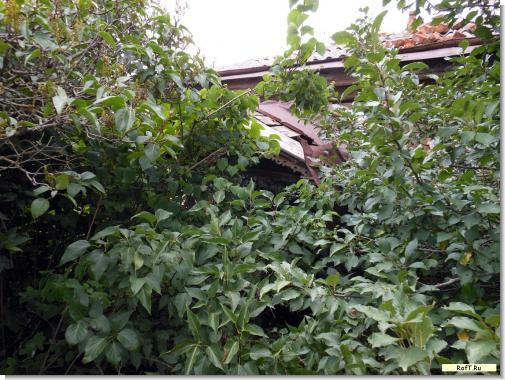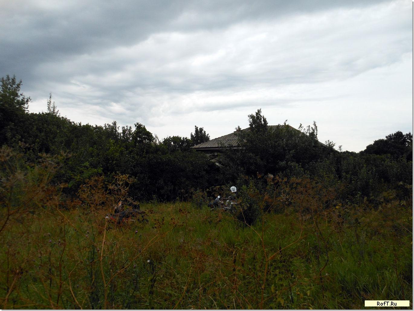 На самом верху среди сосен, осин и фруктовых деревьев затерялся турлучный домик. Крыльцо заросло сиренью - вечный спутник человека. Внутри все разрушено.