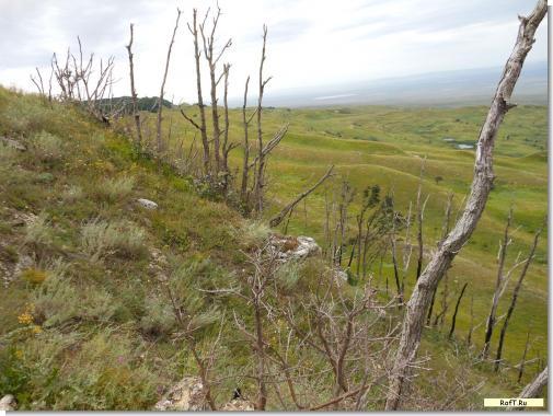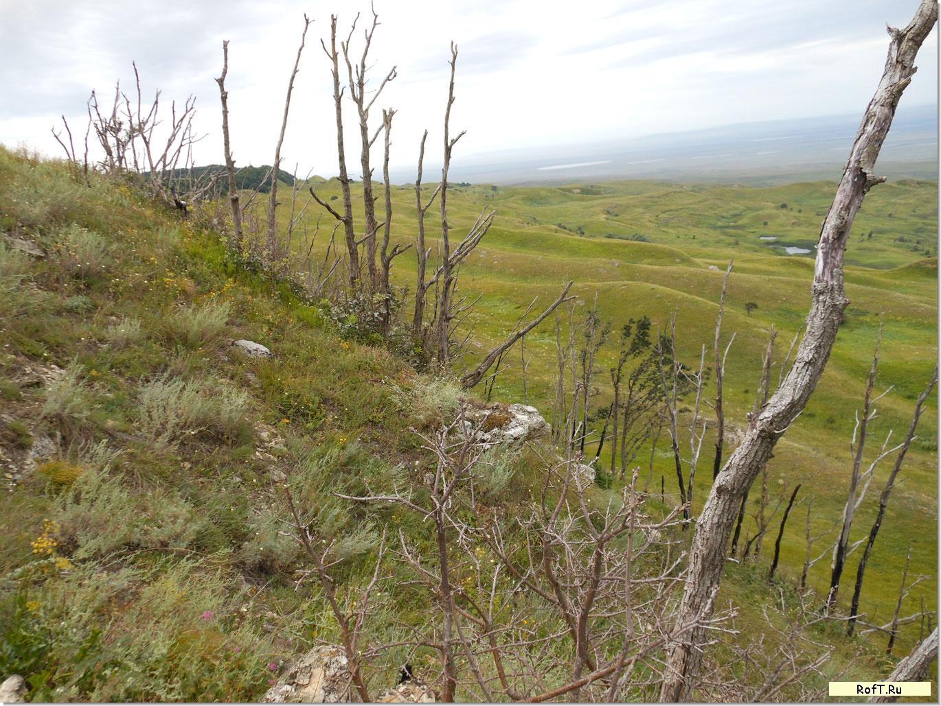 Много лет дубы цеплялись за каменистый склон, но почему-то вымерли. Стоят теперь как скелеты по периметру плато.