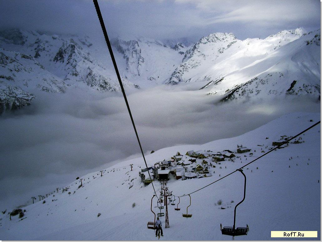 На склоне легкий ветерок а под ногами мягкий снег и облака. Сказка.