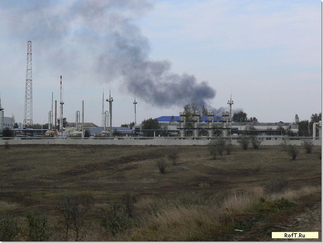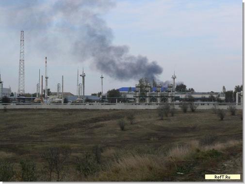 Вот сама газораспределительная станция рядом с ст. Рождественская, которая рядом с Рыздвяным. За ней виден столб дыма, Пламя уже утихло.