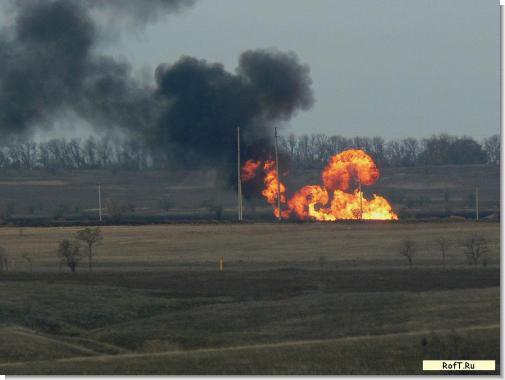 • <i>..Как сообщают наши источники в Ставрополье, произошла глобальная авария на самом крупном в мире Северо-Ставропольс ком подземном газохранилище в районе посёлка Рыздвяный. Район оцеплен войсками, и любая информация оттуда блокируется, а на случай утечек – в телевизор запущен сюжет небольшом пожаре на газопроводе в этом районе, который якобы уже потушен. Однако о «небольшом» пожаре не может быть и речи ибо только столб огня, видимый очень издалека очевидцами, по их мнению достигает высоты в 200-300 метров и иногда напоминает грибовидное облако после ядерного взрыва. О масштабах и последствиях произошедшего легко можно судить хотя бы из масштабов терпящего катастрофу объекта..</i> Паникеры!. Пиздеж это и провокация. Я лично там был и лично видел что происходит. Все на фотках.