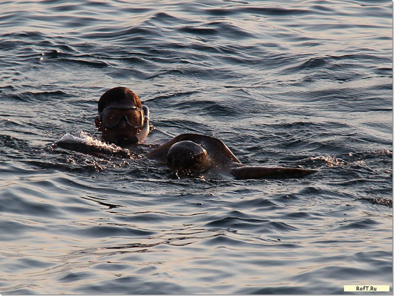 водой - это отличный пловец. Одним гребком уходит на глубину в